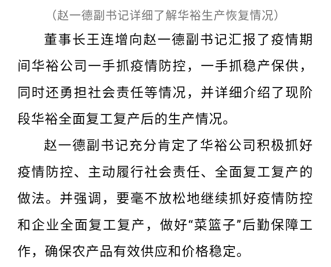 河北省委副書記趙一德蒞臨華裕指導(dǎo)復(fù)工復(fù)產(chǎn)